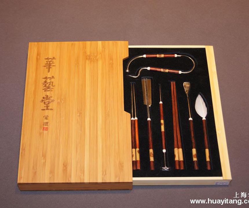 名称:紫檀湘妃竹纯银七件...