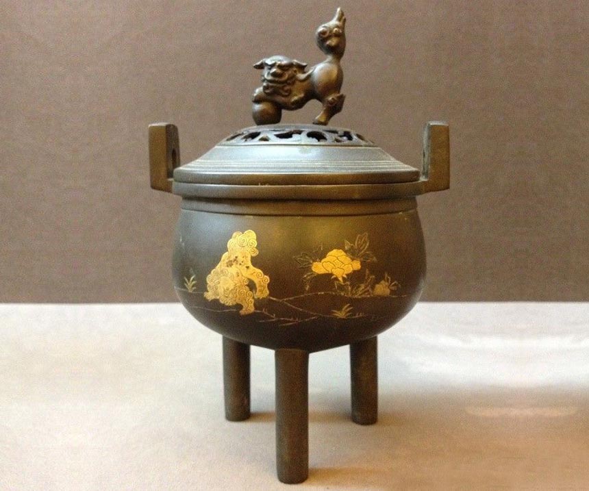 名称:三足鼎狮子鎏金熏香...