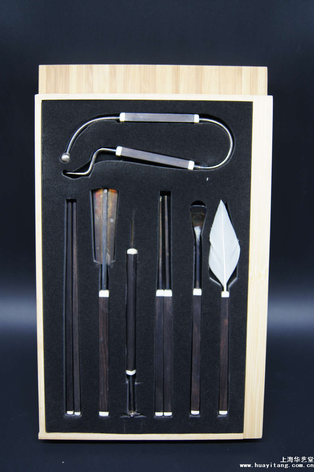 名称:乌木方柄纯银香道具七件套 规格:长17cm 编号:69090