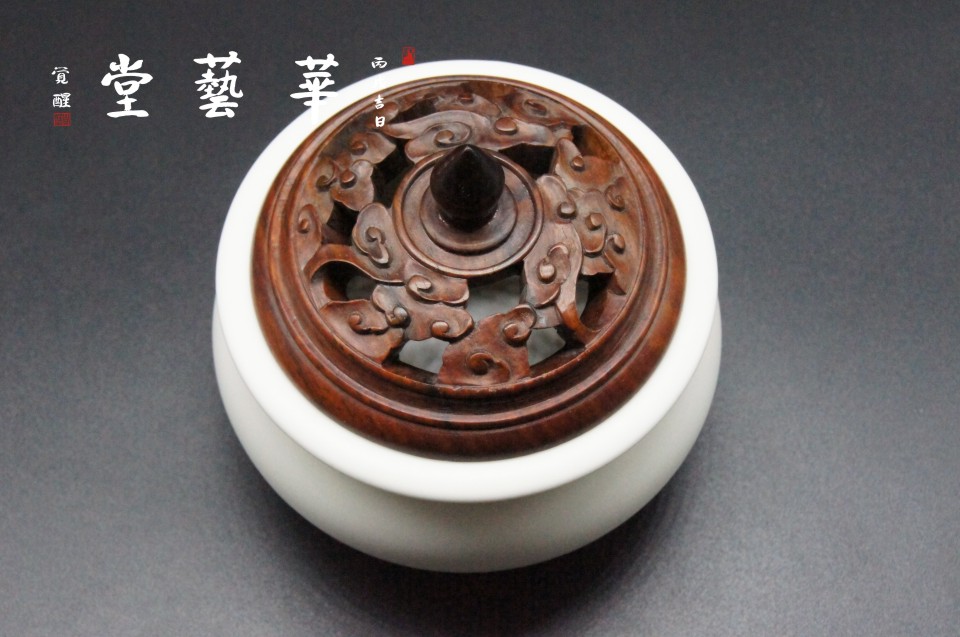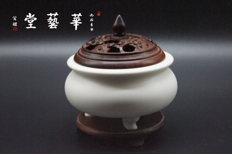 名称:白瓷-盘香炉 规格:10cm*10cm*10.5cm高 编号:68286