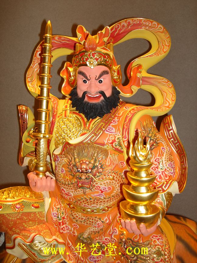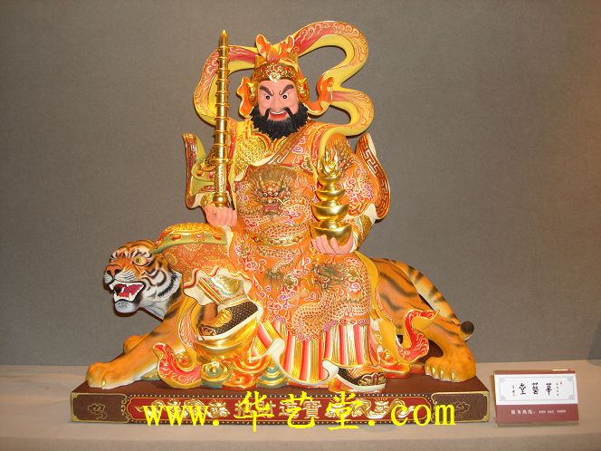 名称:极彩木雕-武财神 规格:47cm*25.5cm*47cm高 编号:68675