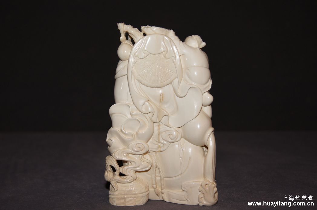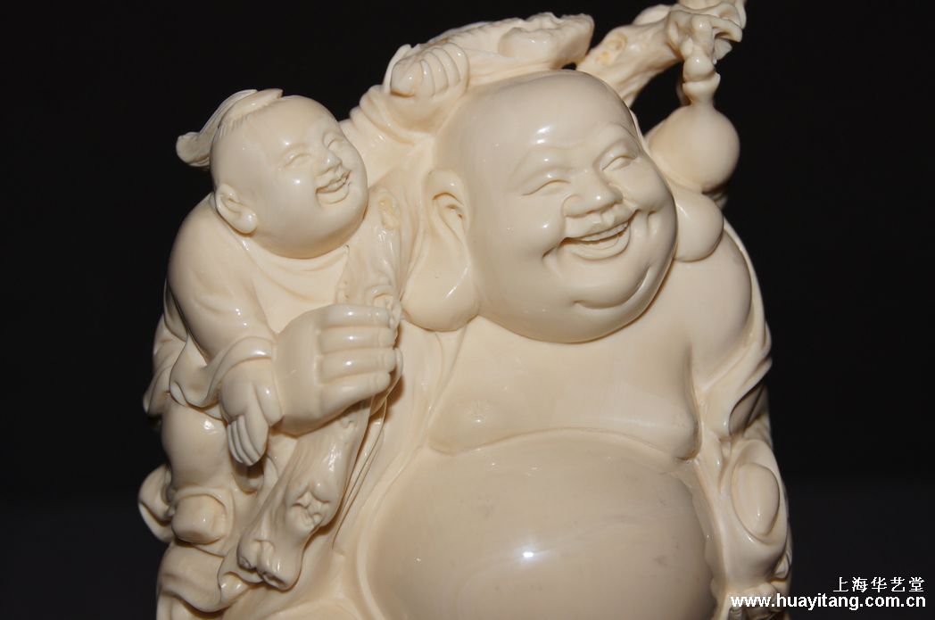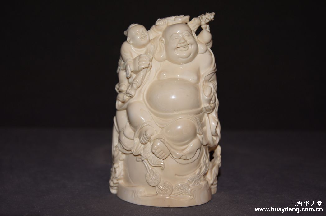 名称:猛犸牙雕-童子戏弥勒   规格:8cm*4.5cm*13.5cm高    重量:0.413kg    编号:681306